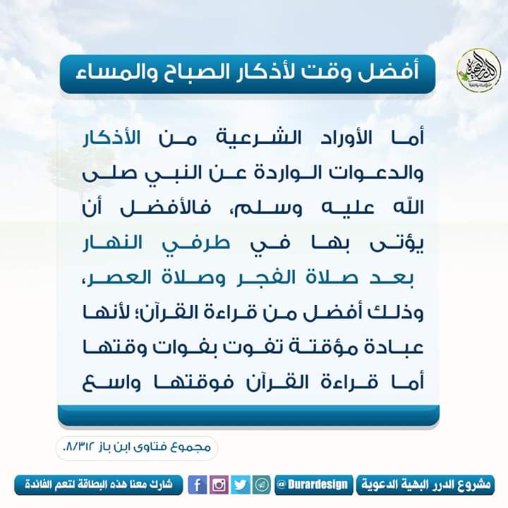 الدرر البهية الدعوية On Twitter أفضل وقت لأذكار الصباح و المساء بطاقات الدرر البهية الدعوية