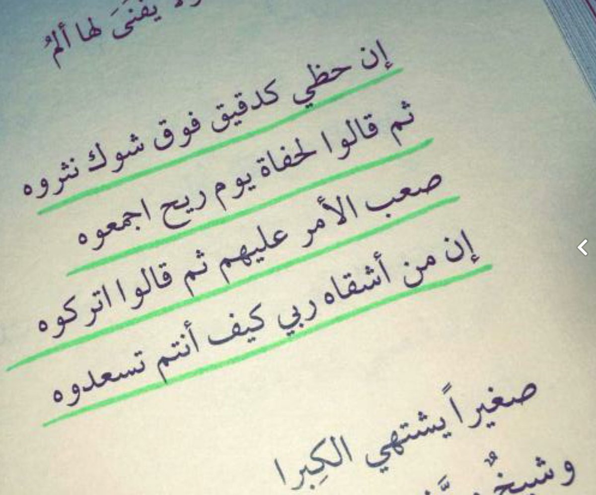 ان حظي كدقيق فوق شوك نثروه ثم قالوا لحفاة يوم ريح اجمعوه صعب الامر عليهم ثم قالوا اتركوه إن من أشقاه ربي كيف أنتم تسعدوه Cool Words Arabic Love Quotes Quotes