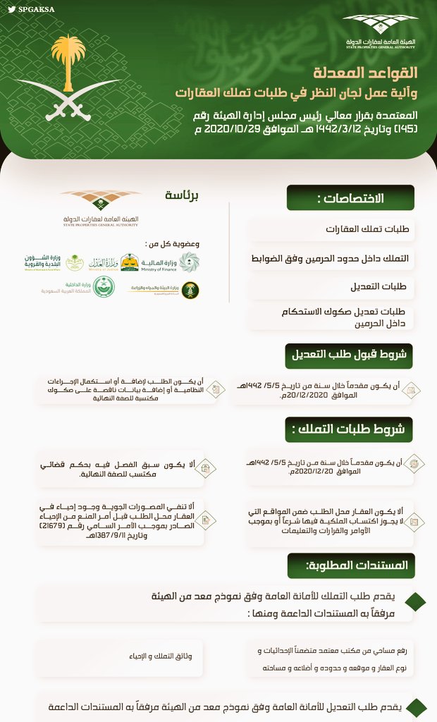 د ياسر البلوي On Twitter جديد التعليمات إلحاقا بشإن قواعد النظر في دعاوى وإنهاءات تملك الأراضي والاستحكامات تم صدور قواعد وآلية عمل لجان النظر في تملك العقارات والتي قضى الأمر الملكي الأخير