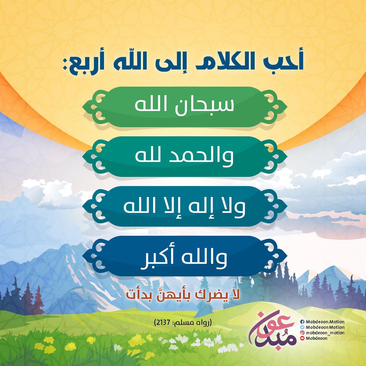 الله ربـي On Twitter قالﷺ أحب الكلام إلى الله أربع سبحان الله والحمد لله ولا إله إلا الله والله أكبر لا يضرك بأيهن بدأت Rtwit 1