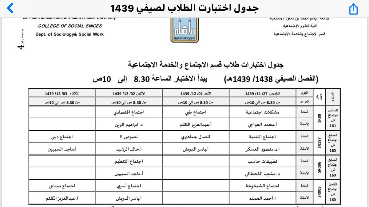 الترم الصيفي بجامعة الامام 1439 أوراق