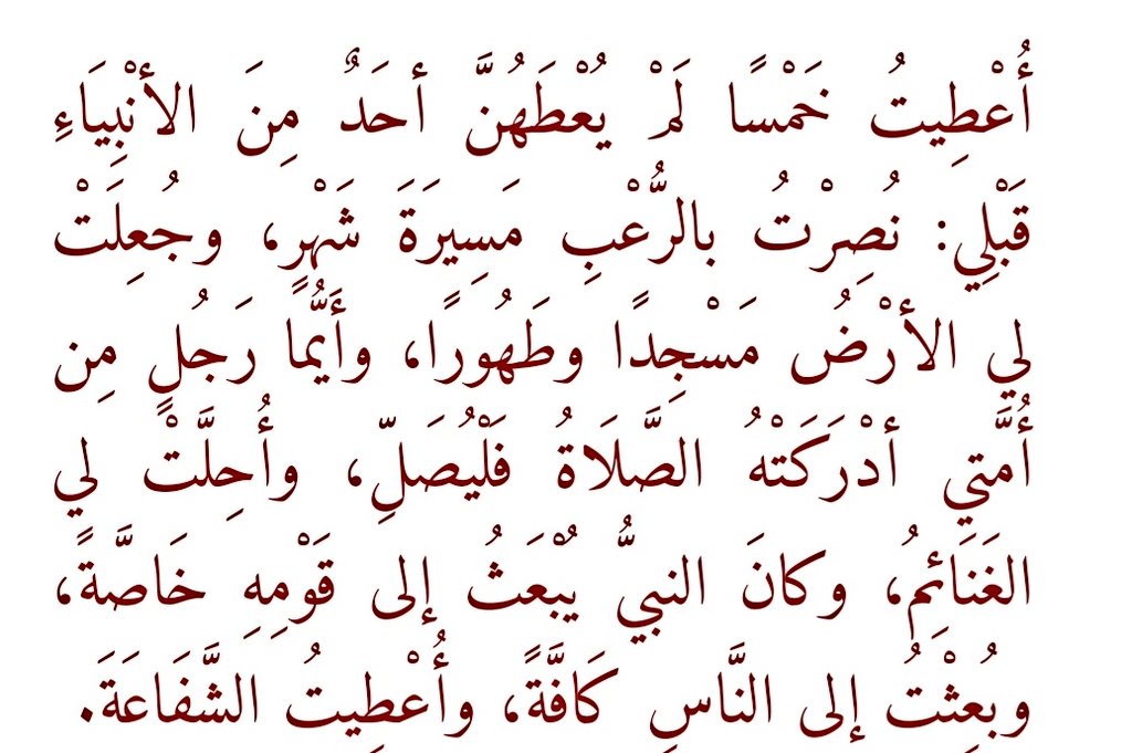 قال رسول الله صلي الله عليه وسلم اعطيت خمسا لم يعطهن احد قبلي مدونة نور القران الكريم