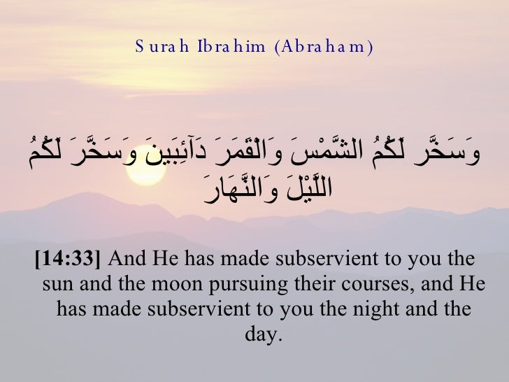 33 و س خ ر ل ك م الش م س و ال ق م ر د ائ ب ي ن و س خ ر ل ك م الل ي ل و الن ه ار سورة إبراهيم Body Food Celestial