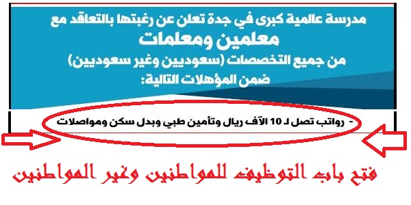 اعلان مدرسة دولية كبــــرى في جدة عن فتح باب التوظيف للمواطنين وغير المواطنين 3 مايو 2017