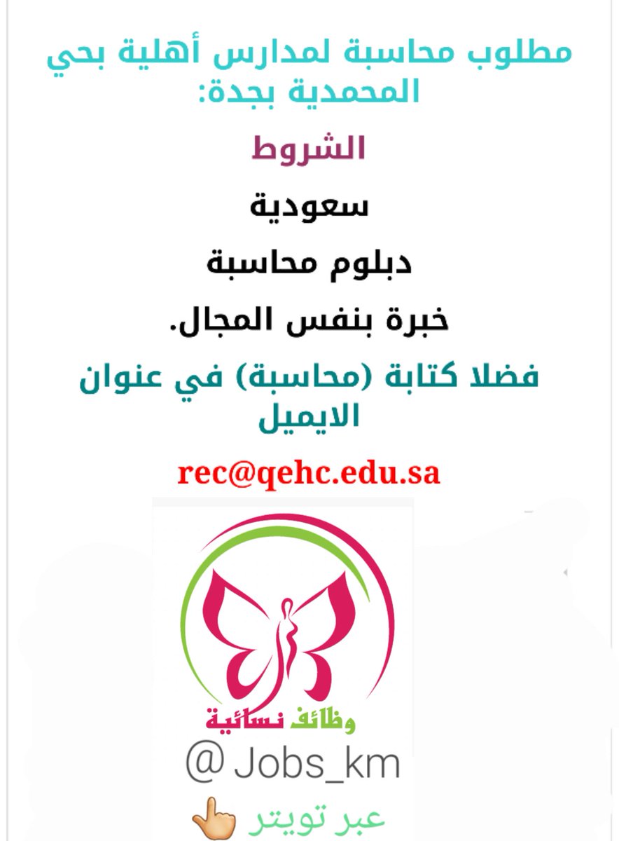 وظائف نسائية Auf Twitter وظائف وظائف نسائية مطلوب محاسبة للعمل في مدارس اهلية في حي المحمدية ب جدة Jobs Km وظائف جده جده