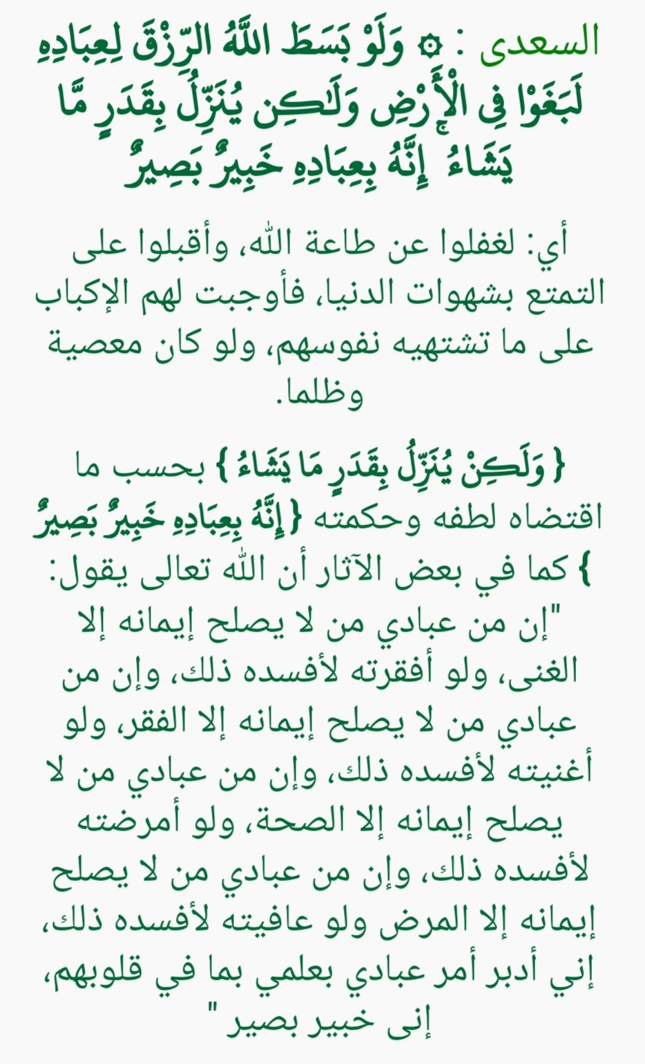 سعد العمار Twitterren ولو بسط الله الرزق لعباده لبغوا في الأرض ولكن ينزل بقدر ما يشاء إنه بعباده خبير بصير الشورى 27 Http T Co Mozgn4qjv3