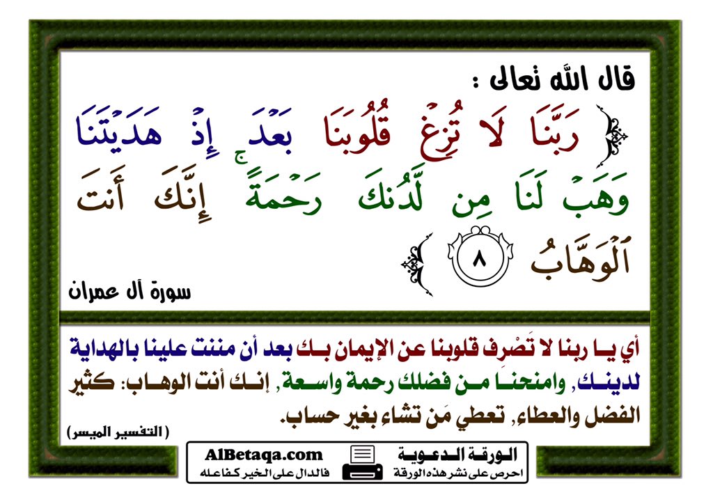 ولو ترى إذ وقفوا على النار فقالوا يا ليتنا نرد ولا نكذب بآيات ربنا موقع البطاقة الدعوي