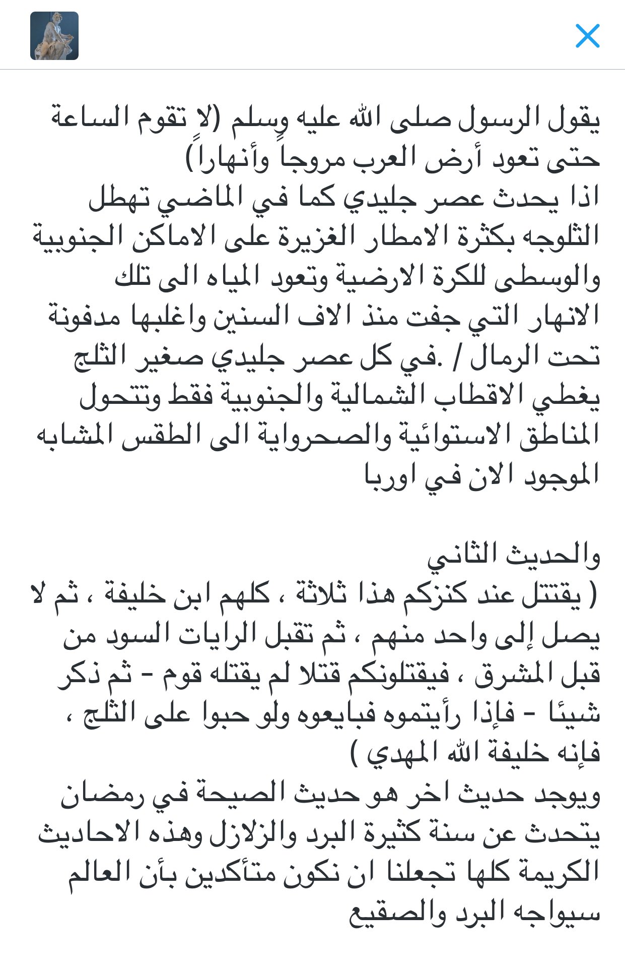 اصلاحي Twitterissa صح كلام رسول الله محمد صلى الله عليه وسلم لما قال يقتتل عند كنزكم ثلاثة كلهم ابناء خليفة ثم تأتي
