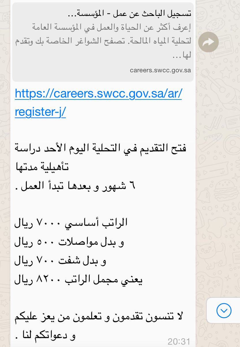 وظائف رجالية شاغرة بالمؤسسة العامة لتحلية المياه وظائف اليوموظائف اليوم