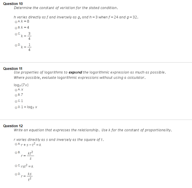 Solved Question 10 Determine The Constant Of Variation Fo Chegg Com