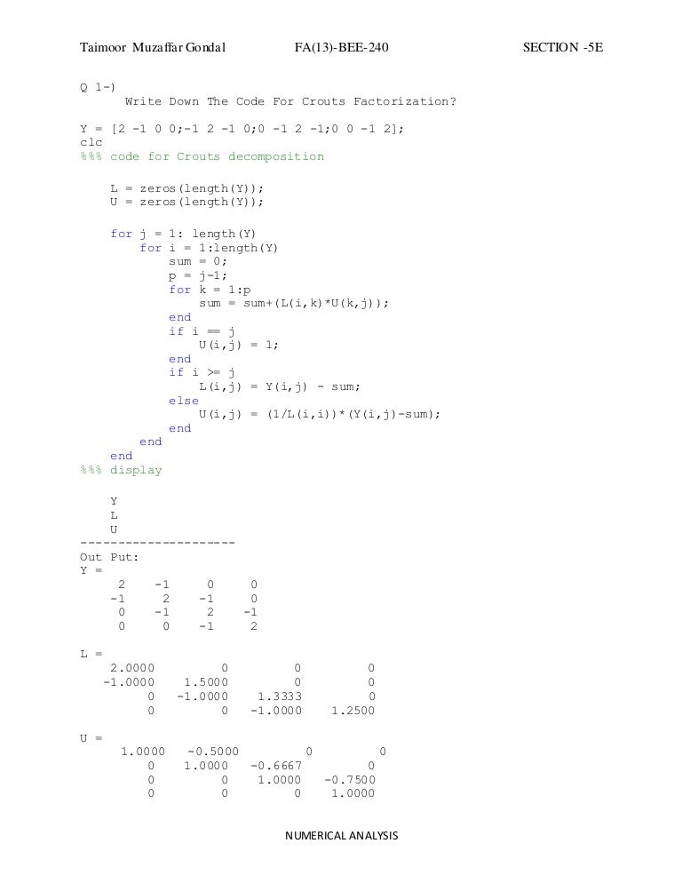 Matlab Lu Decomposition Code For Solving Linear System Of Equations Codetobuy