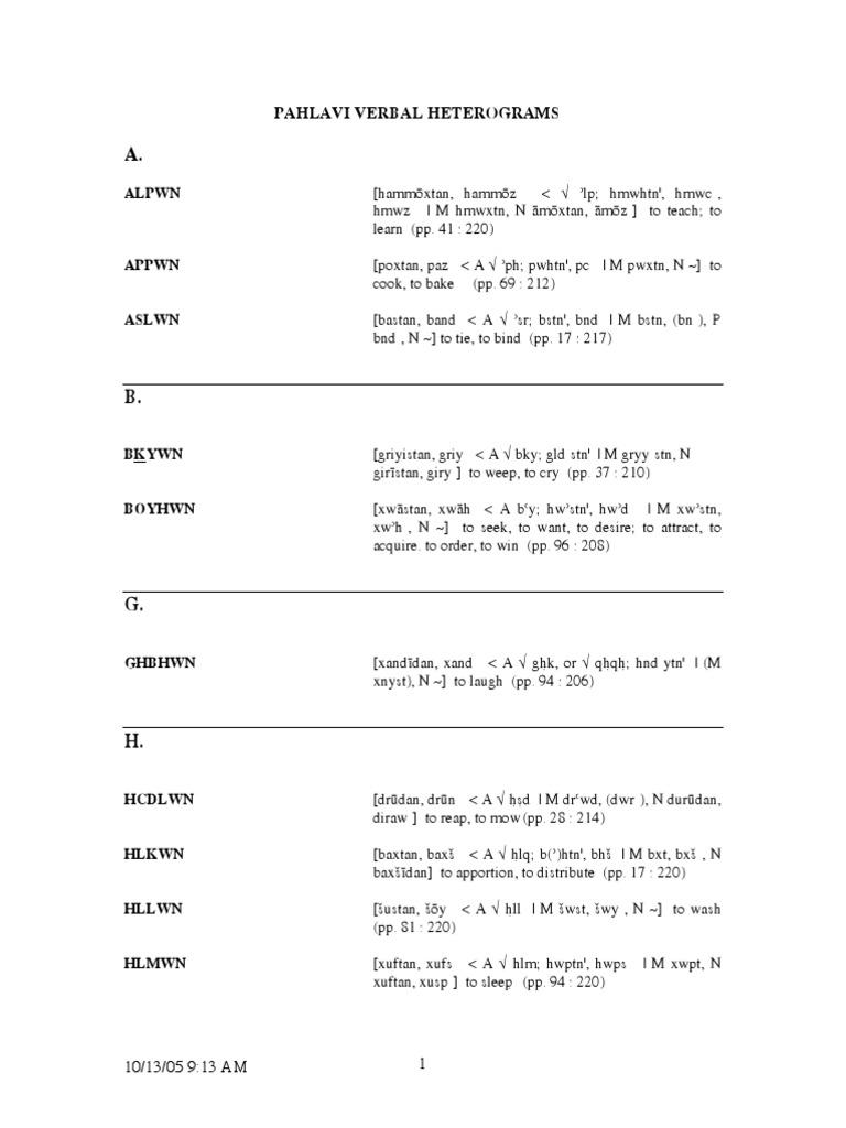 Inscriptional Pahlavi Grammar Persian Language Subject Grammar